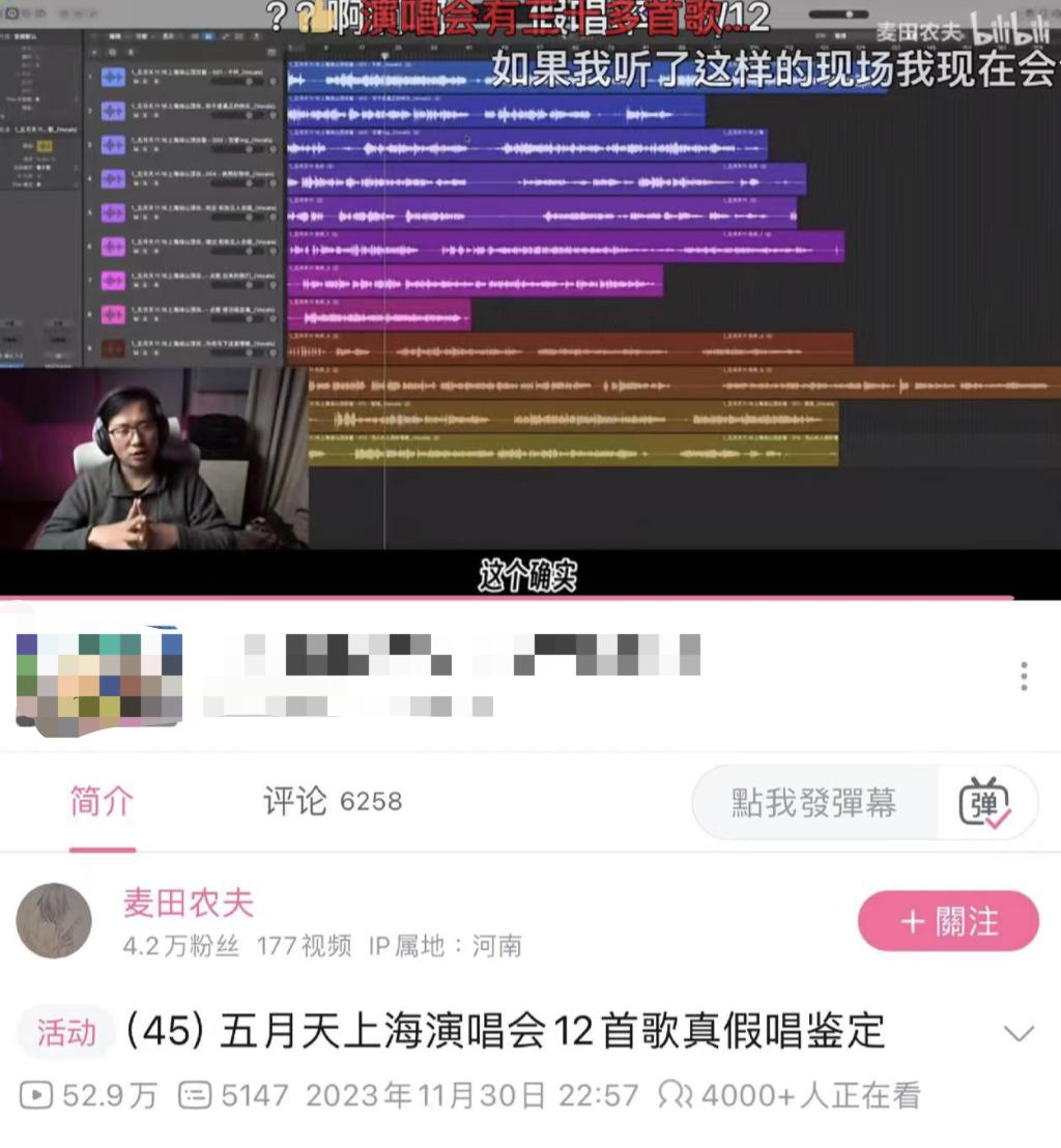 虽然有网友质疑他软件疑似造假、判定假唱方式主观,但确实也有很多人相信他是技术流。于是就给这个 up 主投稿五月天的演唱会,让他做鉴定。