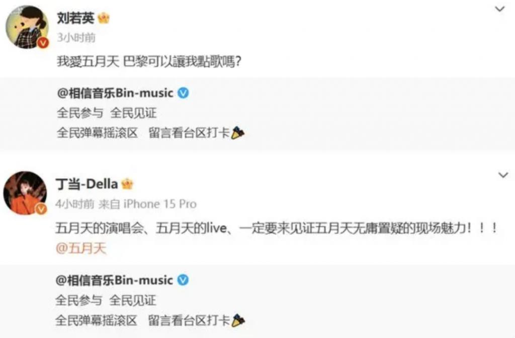 而事情发酵之后,网络的舆论也明显呈现两级的状态。五月天经纪公司发声明否认假唱后,有歌手声援五月天。