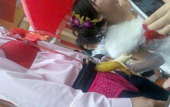 新郎被迫穿上女性内衣,并在裆部放一根香蕉。