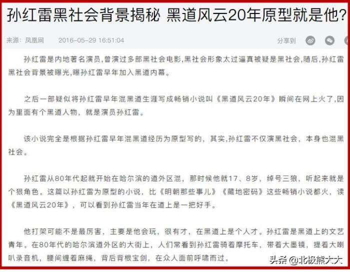 同道中人孔二狗,还把孙红雷早年混迹道上的经历为原型,写了一本小说《黑道风云20年》。