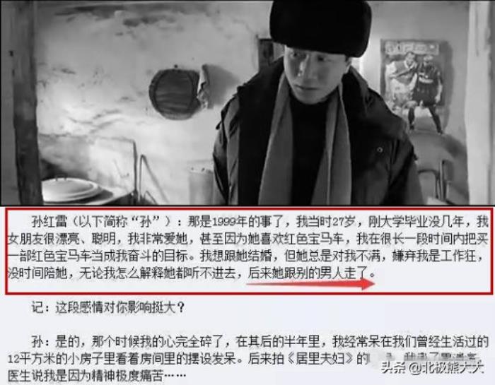 和孙红雷交往三年半的圈外女友,除了嫌他太忙没时间陪自己外,还嫌他穷、没出息,跟别的男人走了。