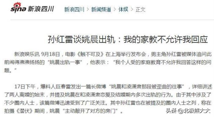 当时有一个很火的热搜话题“姚晨婚内出轨四次”,有知情人透露,其中有一次就是和孙红雷。