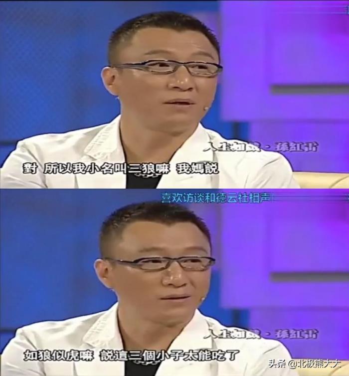“因为当年家里很穷,吃东西的时候就像饿虎扑食,如狼似虎般,太能吃了,所以小名叫三狼”。