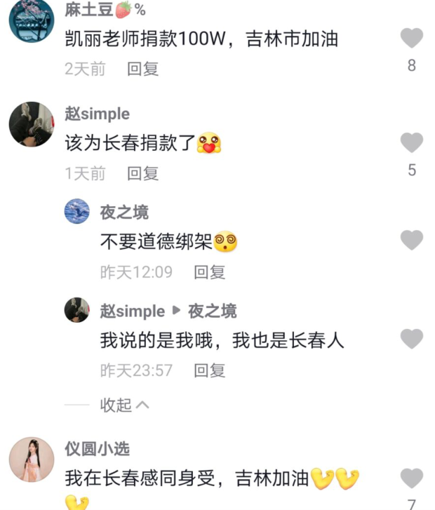 有人拿张凯丽举例子,称其向吉林捐了100万,言下之意就是逼陈佩斯捐款!