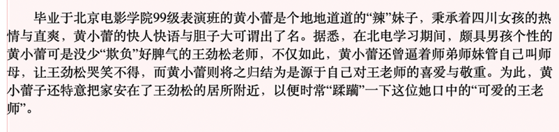 一号绯闻对象是这部剧的主演王劲松,也是黄小蕾就读北电时的副院长。