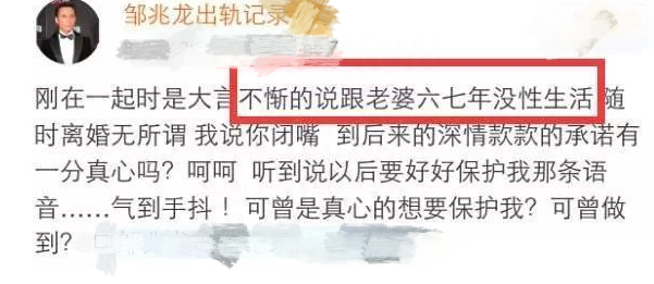 间接的也表明,邹兆龙是不是在7年前就已经开始出轨。