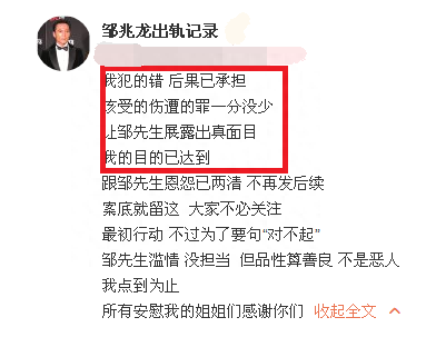 面对此事,当时邹兆龙并没有对这件事进行回应,但这位“小三”似乎并不想这样结束。