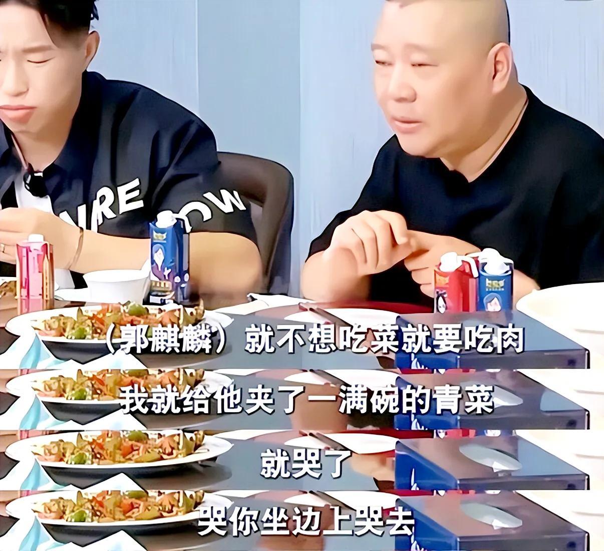 还有一次,郭麒麟特别想吃肉,本以为父亲会满足他,没想到父亲直接给他夹了一碗青菜。他委屈的哭了。