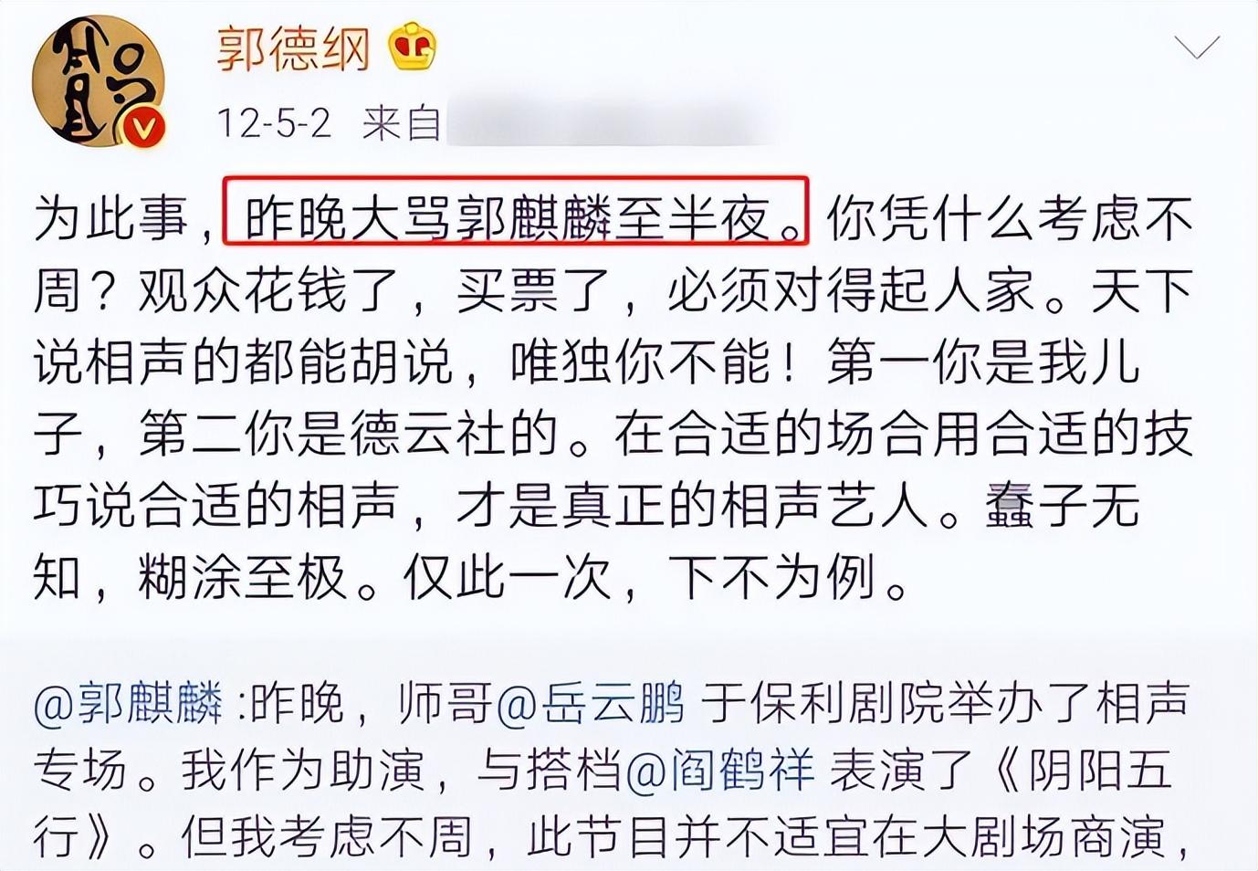 没想到,郭德纲再一次严父上线,他说:“蠢子无情,糊涂至极。”
