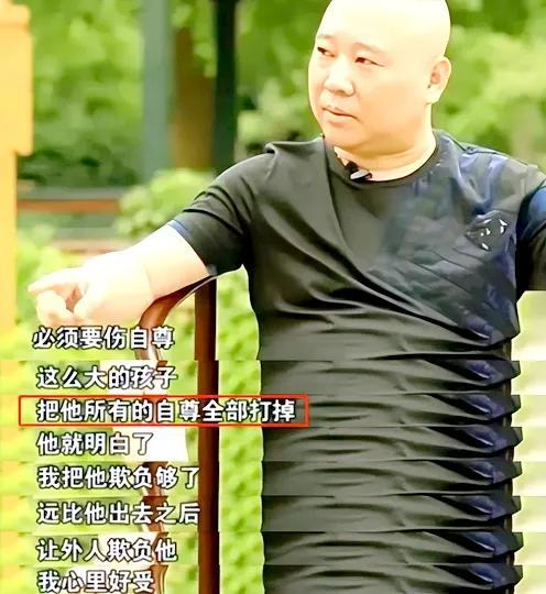 的确,郭德纲崇尚的是棍棒教育,在他看来“一定要将孩子的自尊心打掉”,正是在这种打压式的家庭中,郭麒麟生活的十分卑微。