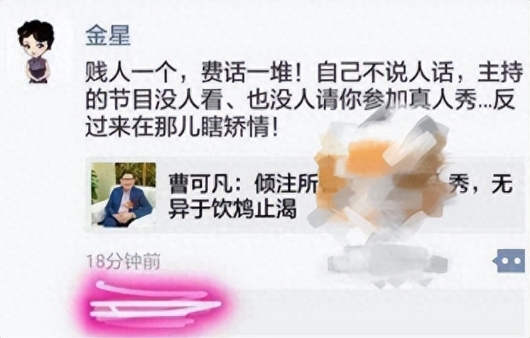 曹可凡的言论刚说完不久,金星的朋友圈就被媒体曝光。