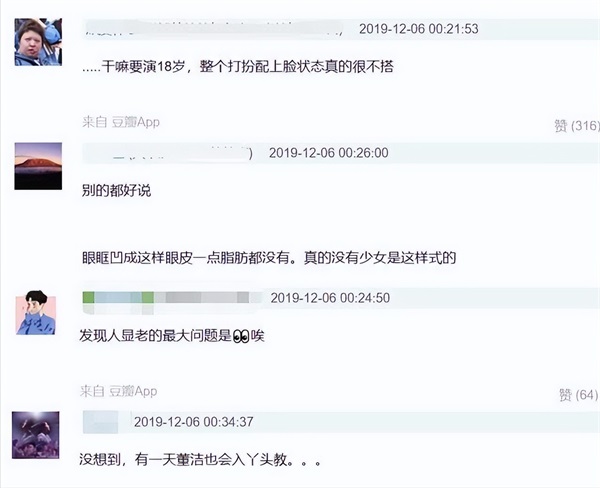 可以说那种违和感真的是隔着屏幕都感受到,那明显的法令纹以及松弛下垂的皮肤状态,这怎么看都和年轻少女是完全挂不上钩的。