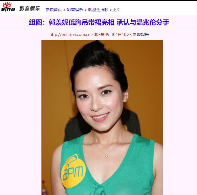 直到2005年,郭羡妮才明白感情不是人生的全部,选择与温兆伦分手。