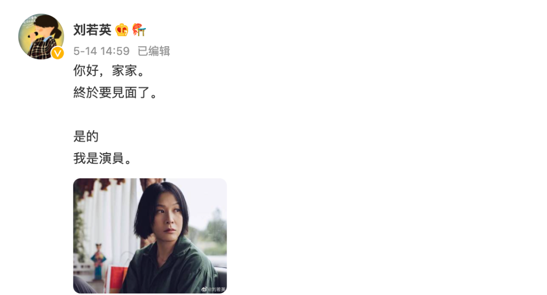 前段时间,她官宣了短片《家家》,重新找回了演员的身份。