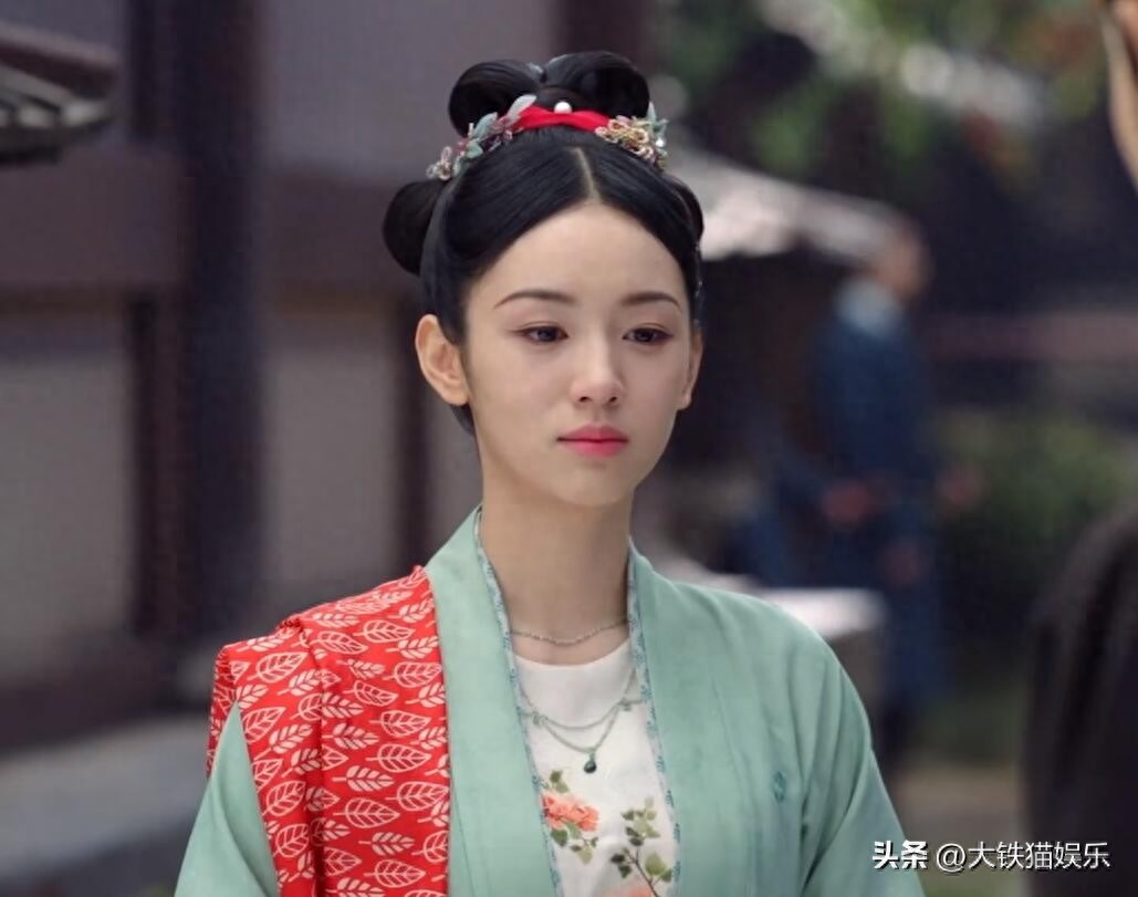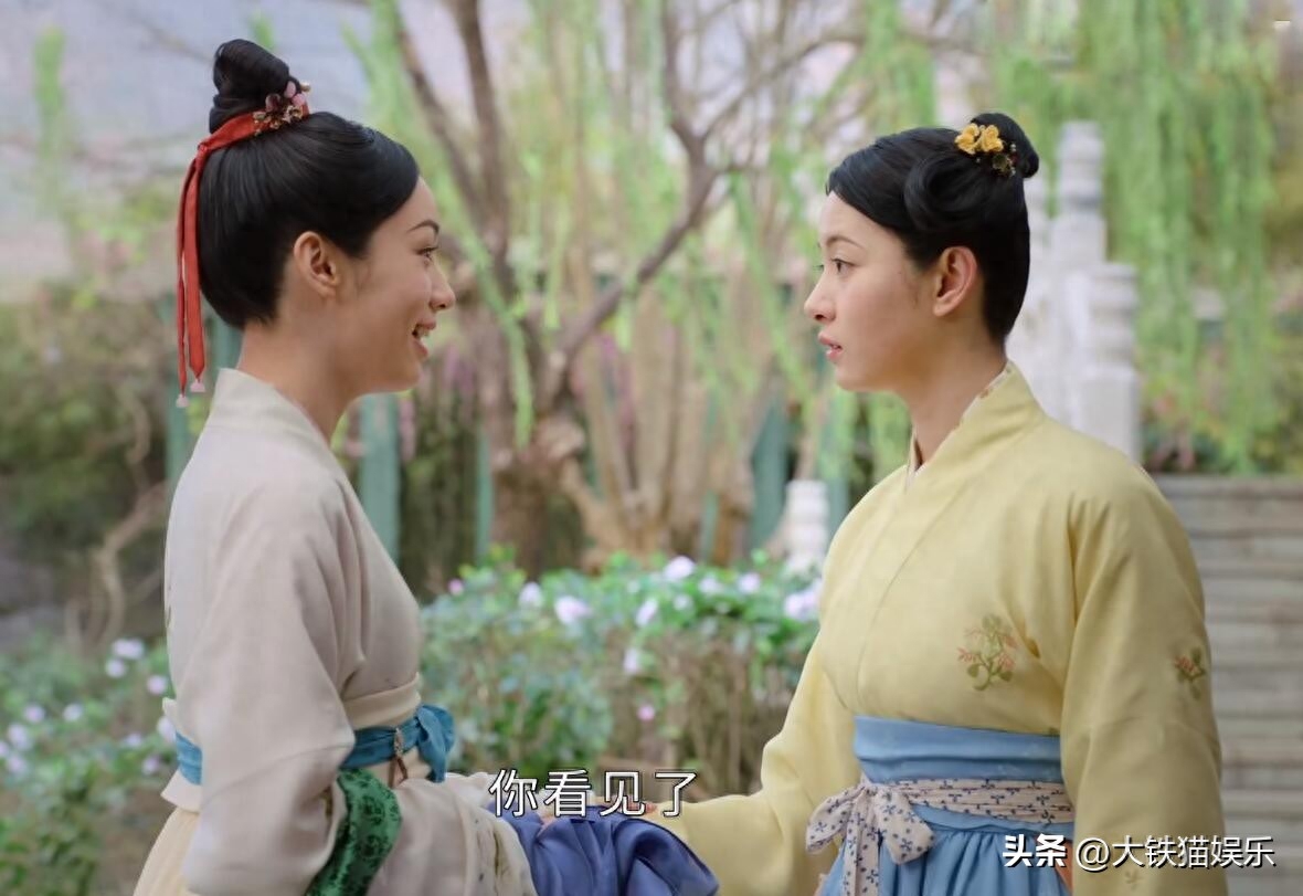 与女主初见时,她穿着一套鹅蛋色的衣衫,看起来虎背熊腰,造型本身也不够出彩,两个没有垫发包的小髻暴露了她的平头短板,一眼看上去就是丫鬟的既视感,殊不知她的人设其实也是大家闺秀。