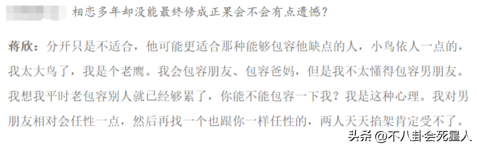 就像蒋欣说的那样,相恋多年没能修成正果不遗憾,只是因为“不合适”。