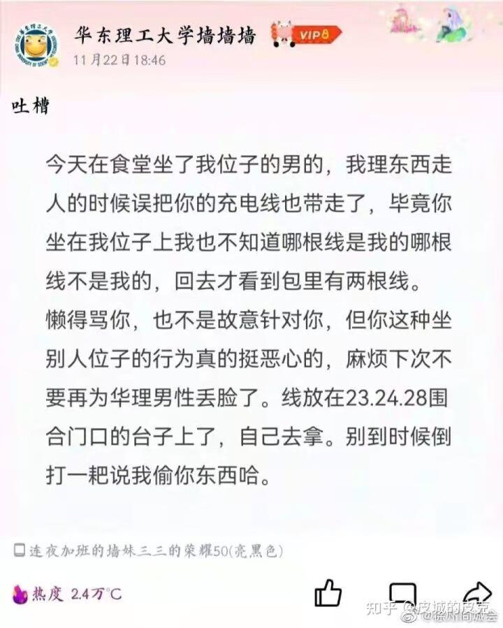 后续有人找到墙要说法的时候,墙表示“我们没有搞性别对立,你们华东理工男这些东西...”对男生造成了显著的二次伤害