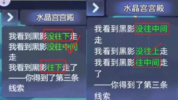 你们看到线索上面有两个重复的路是错的,只有一个的是对的,就好像我下面两个往下是错的,只有一个中间,中间的就是对的