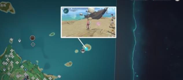 位于神里屋敷的右边的海域,需要开船过去,且就一个绯樱绣球,所以不建议去采集。