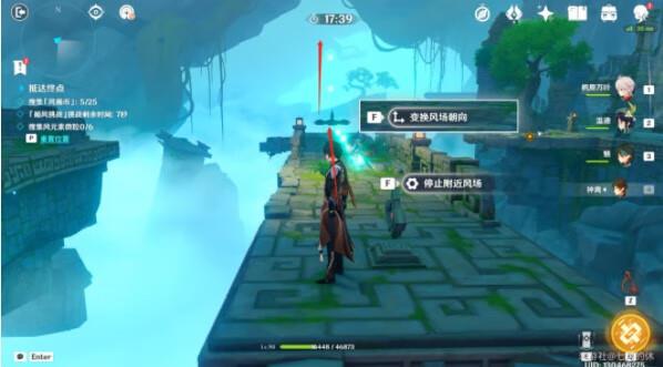 1.进入挑战,第一个机关不停风场也没事,可以直接拿,在箭头机关处,变换风场朝向,即可往上飞,拿到风遁币,并飞到对面平台。