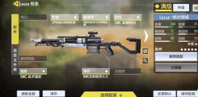 使命召唤手游中Locus的枪械数值在所有狙击枪中都是非常优秀的,它的基础伤害面板很高,有足足90点之多,在加装配件后更是能够直接突破100点,非常恐怖。再配合上其较高的射程,可以说Locus狙击枪是一把非常优秀的远距离交战武器,而不像NA45这样可以玩冲锋狙。