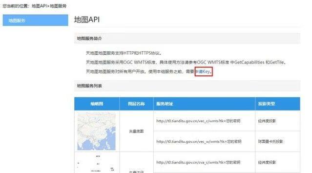 天地图地图服务对所有用户开放。使用本组服务之前,需要申请Key。