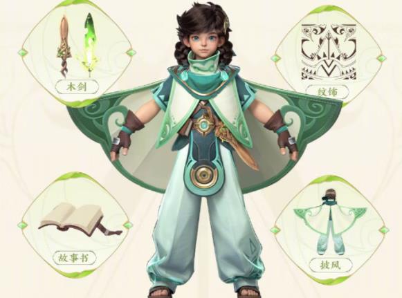 自小受萤火祖树照拂长大的阿启,热爱自然与生命,整体服饰轻便宽松,以生命之绿和萤火之黄组成。身后与翅膀相似的披风可以徐徐展开,帮助他在树林、草丛中快速穿行。