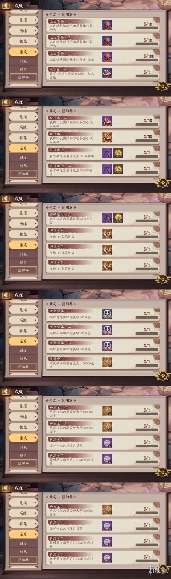 1月20日更新后体验服新增阴阳寮相关成就,大人可前往成就——亲友——阴阳寮查看,完成对应成就即可领取丰富奖励!