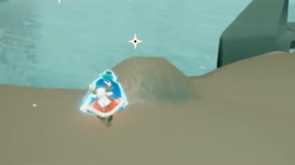 进入新地图后,越过正前方山洞能够看到一条小船,小船上的就是此次深海季的向导先祖。