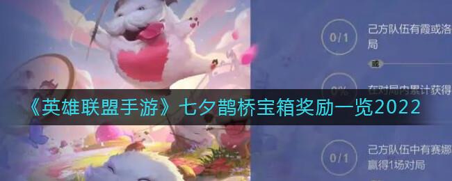 英雄联盟手游中2022七夕鹊桥宝箱已经上架了,每个账号在上架期间,限购100个,售价为100点券,打开70次至少掉落7个七夕鹊桥随机皮肤法球,很多小伙伴们可能还不是很清楚这个宝箱的奖励怎么样,小小编小编接下来就把奖励内容放在攻略中,希望对大家能有所帮助。
