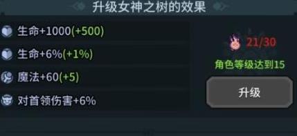 首先是一进去界面的女神之树,通过升级很直接的加**物本身的属性和对领主伤害,而升级用的材料来自水柱洞窟的派遣,良心无消耗,挂机就完事儿了,升上去准没错!