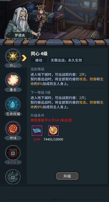 这个技能虽然是被动技能,但是它能将契约兽一部分属性反映到自己身上,等级越高,能带的契约兽越多(最高六级三个),这个技能非常重要。它能将契约兽的血量,攻击力,这些基础属性直接继承到角色身上,而契约兽在同等级的情况下,属性就比角色高得多,且契约兽容易升级。带的契约兽越多,刷图也就越快,这是一个良性循环。