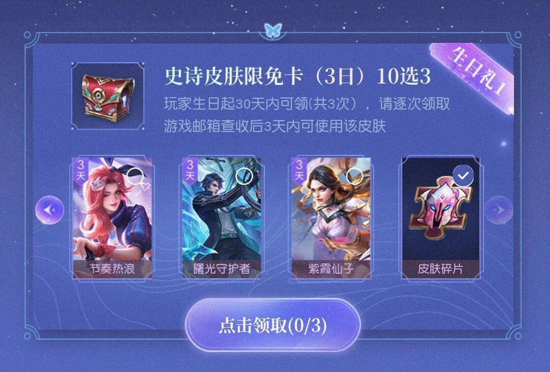 这个礼包是有领取时间限制的,活动时间是2020年11月25日到2021年11月24日,刚好一整年,每个玩家只能领取一次生日礼物。活动期间,只要是生日开始了,30天内都可以去领取,比如玩家是11月25日峡谷生日,那么11月25日——12月25日期间都可以去领取生日礼包,除非超过30天才算错过无法领取。