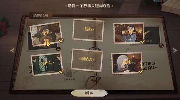 任务一:点击任务后箭头→,进入“圣诞纪念册”,点击“查看关键词”,选择关键词,之后点击观看按钮观看内容,阅读两次“圣诞纪念册”即可完成任务;