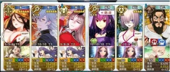 最后是暴击队,这个选择搭配比较自由,主要打手可以用超人熊或者卑弥呼,前者可以瞬间爆发,后者有活动伤害加成,不过比较亏礼装一些,而且考虑到会被发牌员制裁的问题,需要穿洗牌服,但是打起来确实是真的快,拐子以红拐为主。