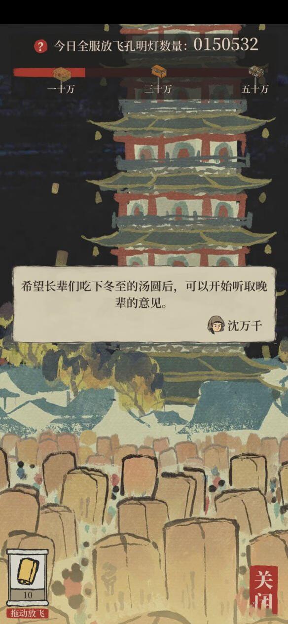 全服放飞【孔明灯】达到10万、30万、50万时,即可在【灯会】界面领取额外奖励。