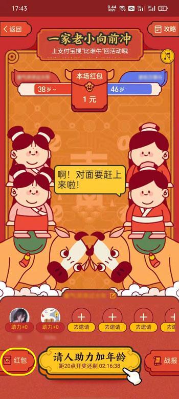 3.在比谁牛页面,点击左下角的【红包】,打开当前队伍获得的红包;