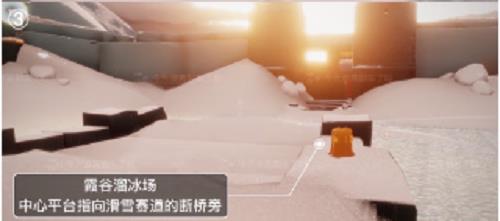 4、第四个:霞谷溜冰场,中心平台指向滑雪赛道的断桥旁右边位置;