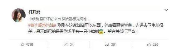 “紫光阁地沟油”今天成为了微博的热搜话题!可能不明真相的吃瓜群众看到这个话题就开始愤怒了:什么时候食品安全又出问题了?