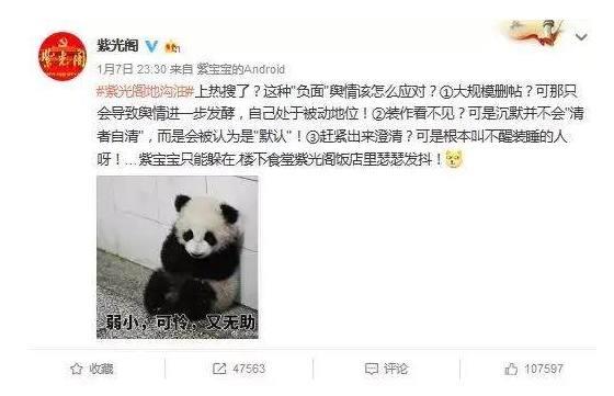 过不了多久,《紫光阁》杂志社可能实在是觉得一句话不说也不好,于是发表了一条微博进行回应,声称“根本叫不醒装睡的人”紫宝宝只能躲在紫光阁饭店里瑟瑟发抖……”