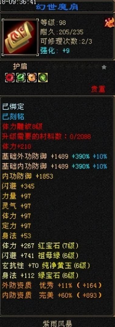 这个护肩牛了!内功防御+闪避+力量+灵气+体力+定力+身法!