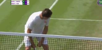 在温网的名宿双打邀请赛上,瑞典名宿比约克曼在被队友误伤后,也即兴上演了“内马尔”翻滚。