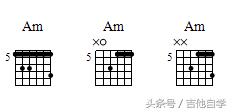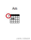 图中为AM的第五把位和弦,为什么叫第五把位,看下图就清楚了
