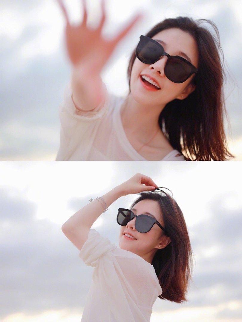 冯提莫晒墨镜美照,射击动作凸显身材,自称不胖略膨胀