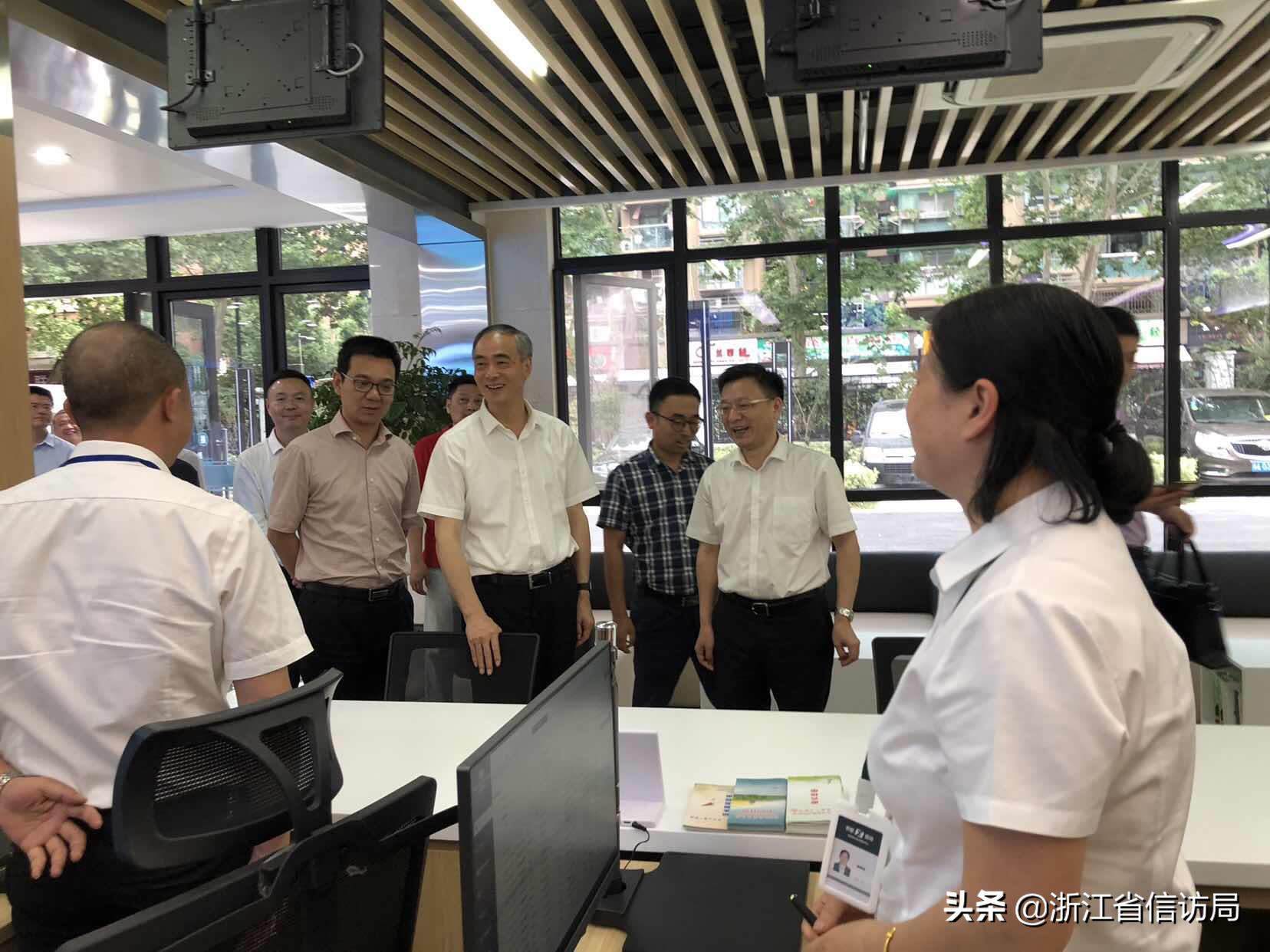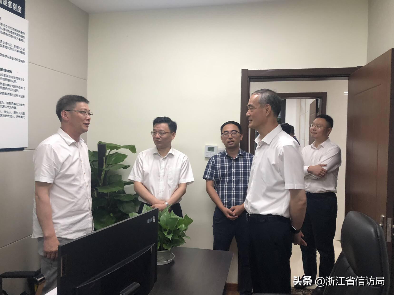 6月17日下午,杭州市委副书记、政法委书记张仲灿到拱墅区调研“信访超市”,市委副秘书长、市信访局局长章登峰,拱墅区委书记朱建明,区委常委、组织部长王涛陪同调研。