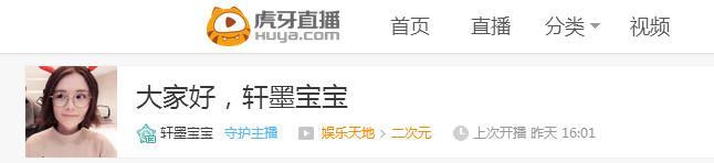 全民轩墨宝宝将跳槽到虎牙?事实的真相扑朔迷离