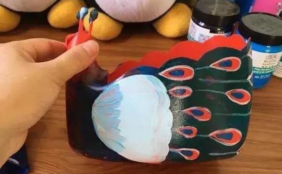 把手部分作为孔雀的脑袋,修剪一下。把接口处也修饰一下。剪出孔雀的形状,在制作过程中,发现孔雀有点难看,所以临时决定改成画孔雀。