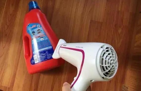 首先准备一个洗衣液桶,把里面的清洗干净。然后准备一个吹风机,用热风把瓶子吹软,这样剪起来比较省力。也方便把外面的标签撕掉!