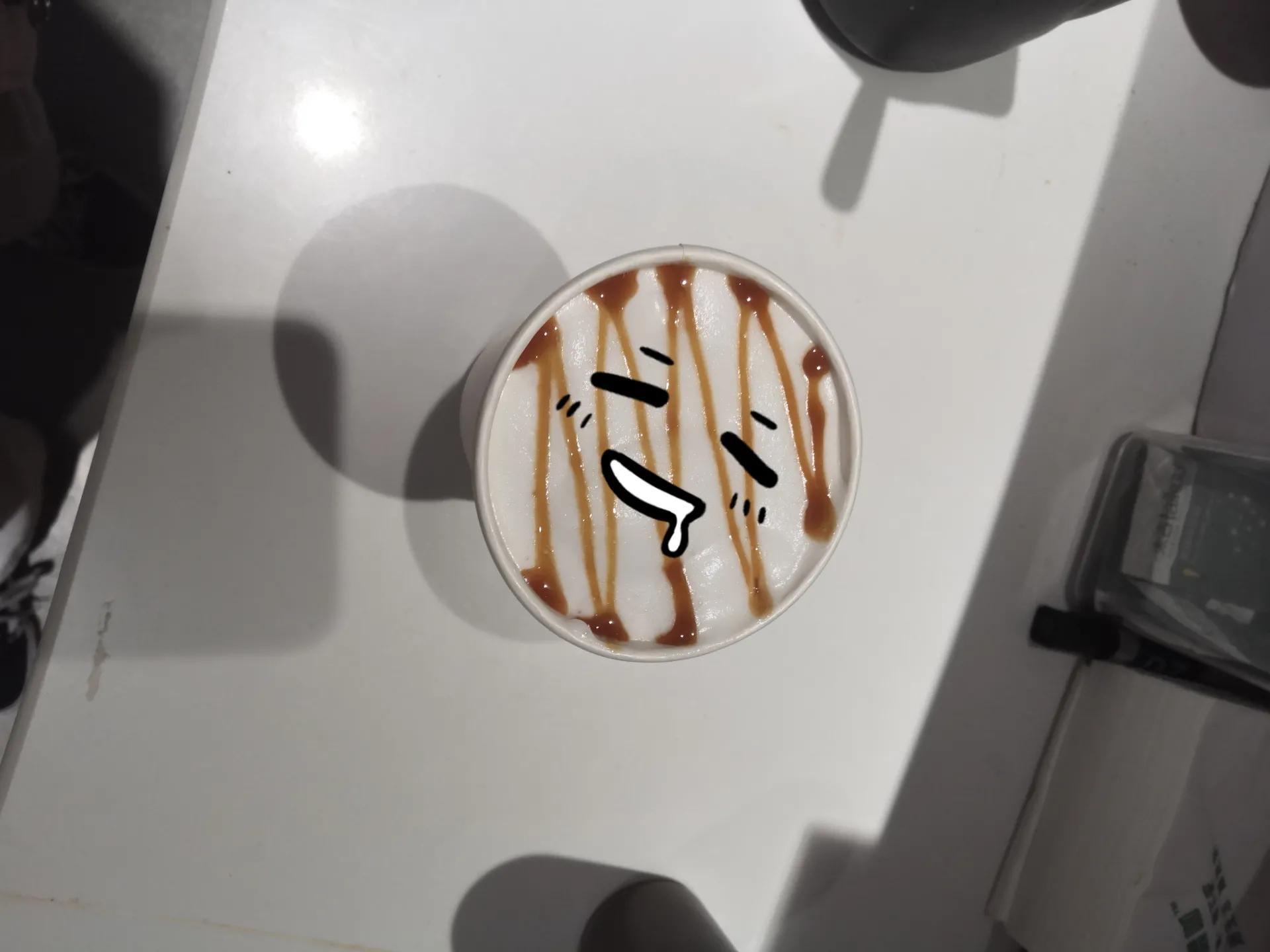 最后,在奶泡上铺好焦糖酱(形状可以按自己喜欢的来)