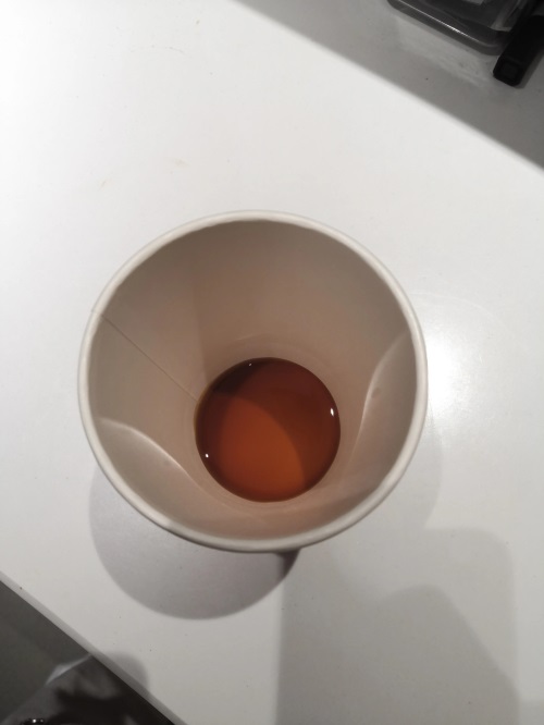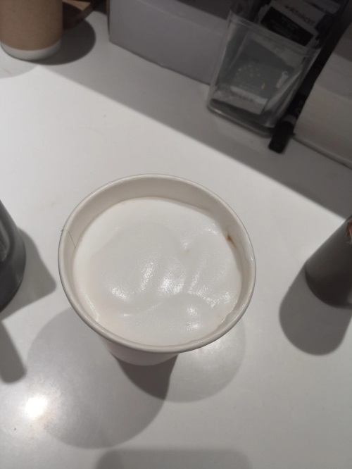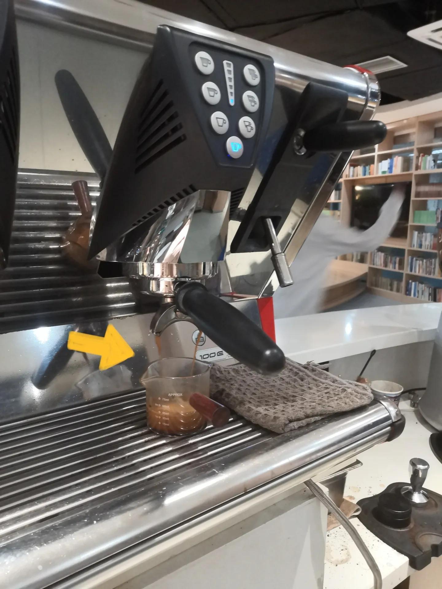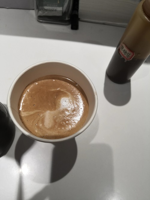 第四步,用勺子抵住出口,将牛奶与咖啡混合